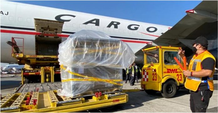 “En estos momentos arriba al AICM un cargamento con nuevas dosis de la vacuna de Pfizer contra la Covid-19”, se lee en un tuit de la SRE.
