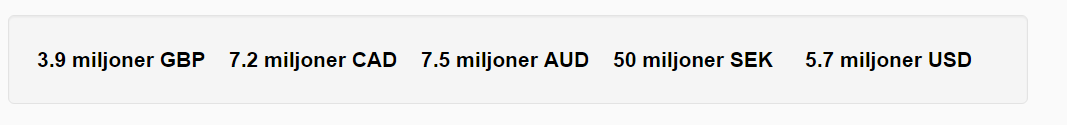 Inte för att euro inte är en riktig valuta. Men nedan följer en konvertering av summan 5 375 695,08 € till andra valutor (inklusive svenska kronor):